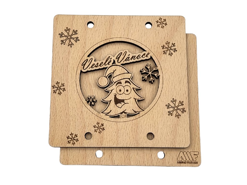 Obálka je vyrobena z kvalitní bukové překližky a zdobena Vánočními motivy.